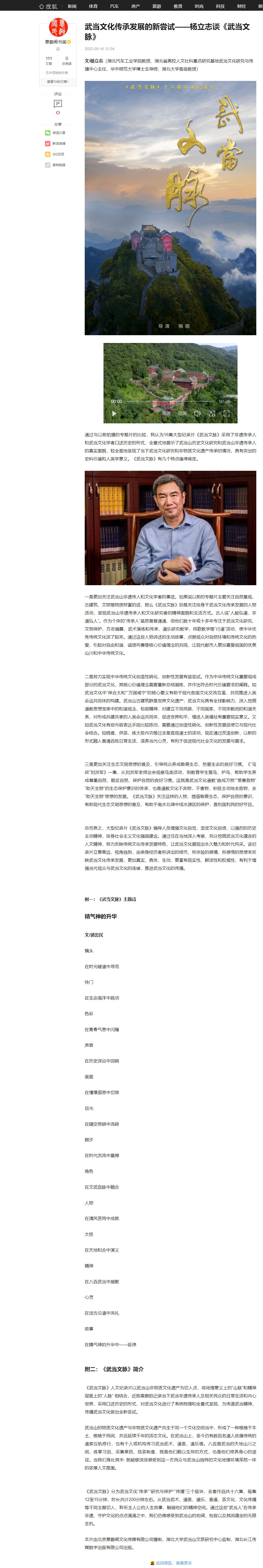 【搜狐】武当文化传承发展的新尝试——杨立志谈《武当文脉》