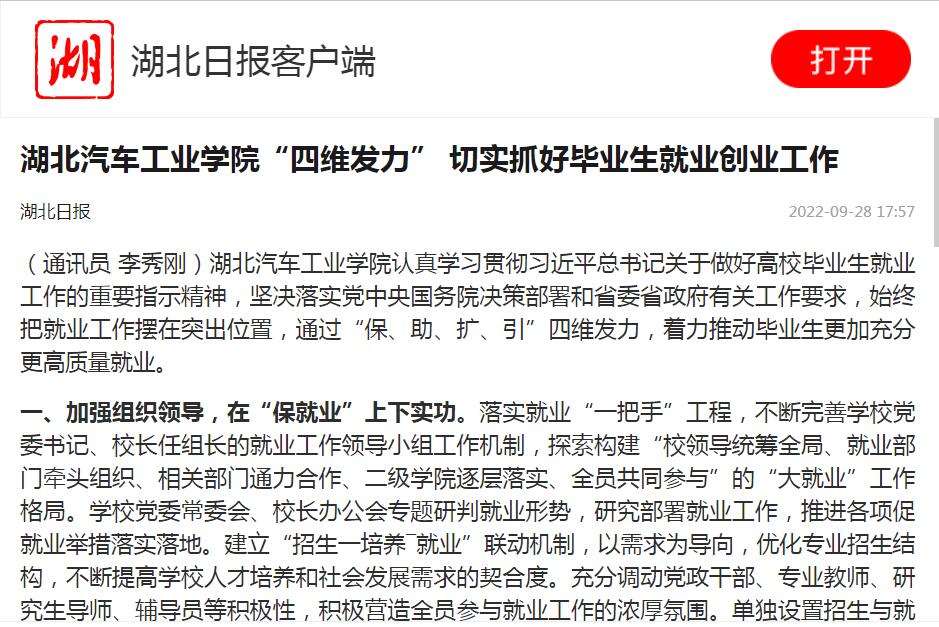 【湖北日报网】湖北汽车工业学院“四维发力” 切实抓好毕业生就业创业工作