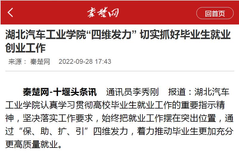 【秦楚网】湖北汽车工业学院“四维发力” 切实抓好毕业生就业创业工作