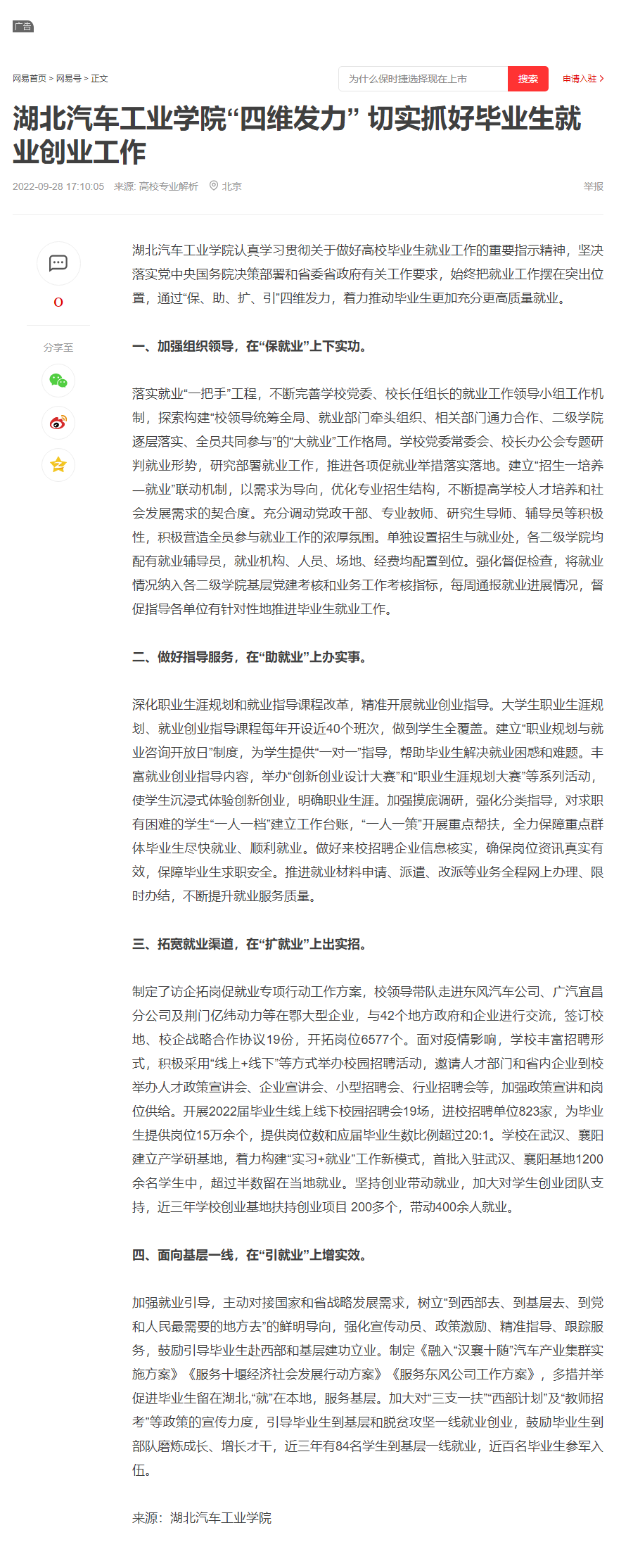 【网易】湖北汽车工业学院“四维发力”切实抓好毕业生就业创业工作