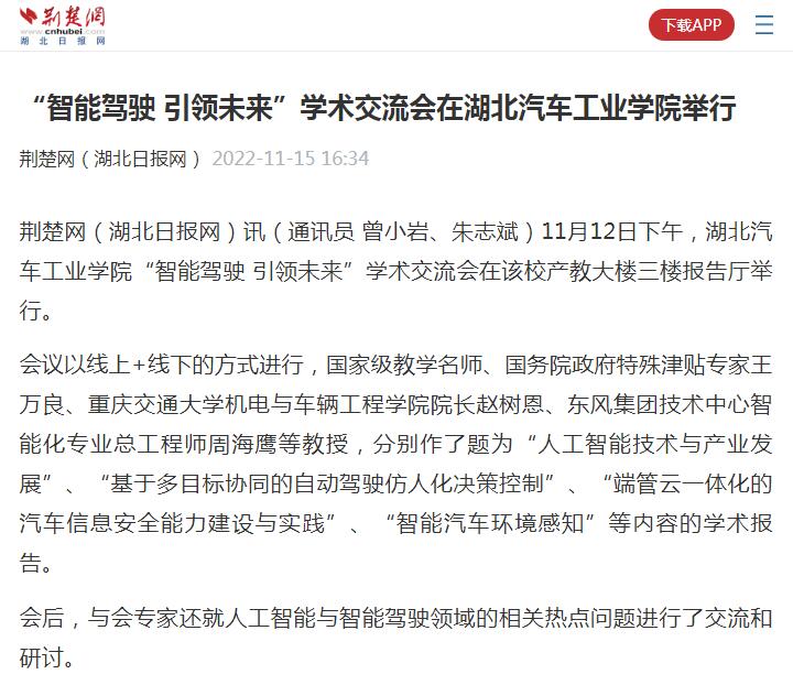 【荆楚网(湖北日报网)】“智能驾驶 引领未来”学术交流会在湖北汽车工业学院举行
