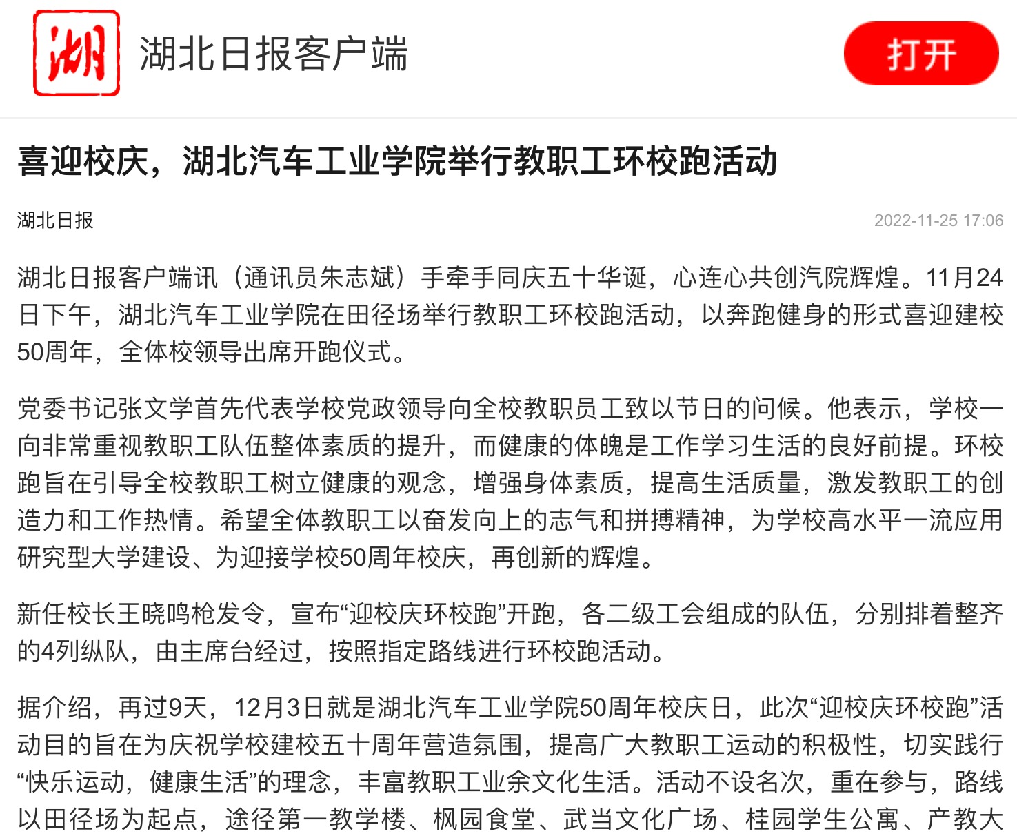 【湖北日报】喜迎校庆,湖北汽车工业学院举行教职工环校跑活动