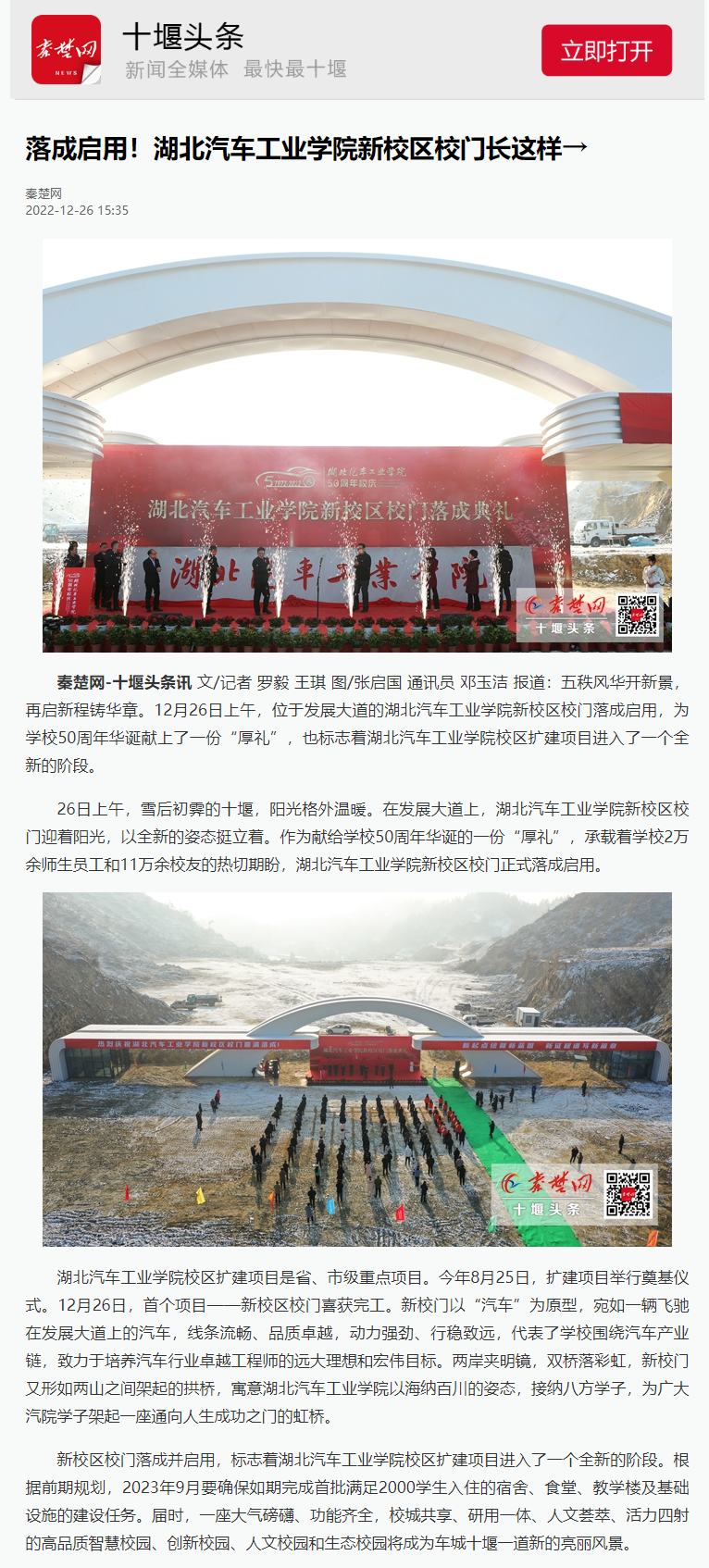 【秦楚网】落成启用!湖北汽车工业学院新校区校门长这样