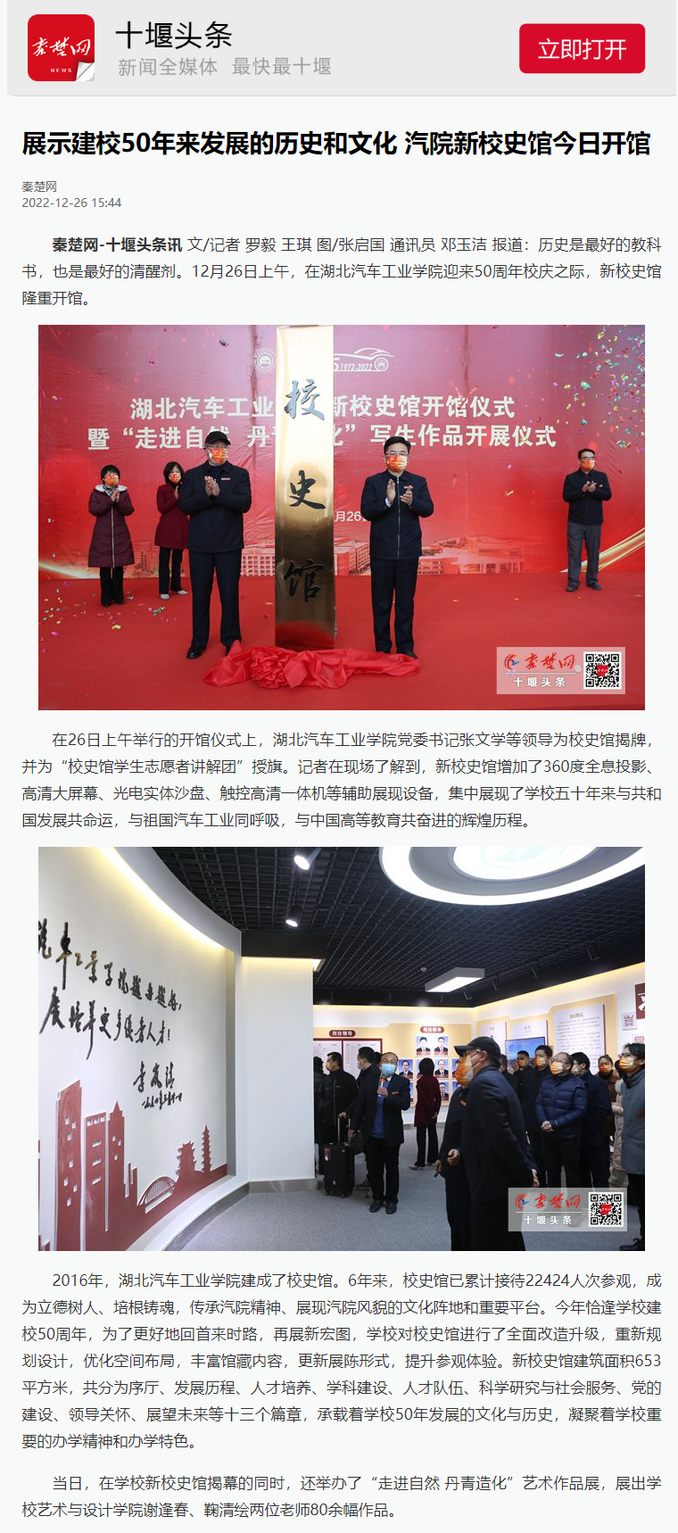 【秦楚网】展示建校50年来发展的历史和文化 汽院新校史馆今日开馆