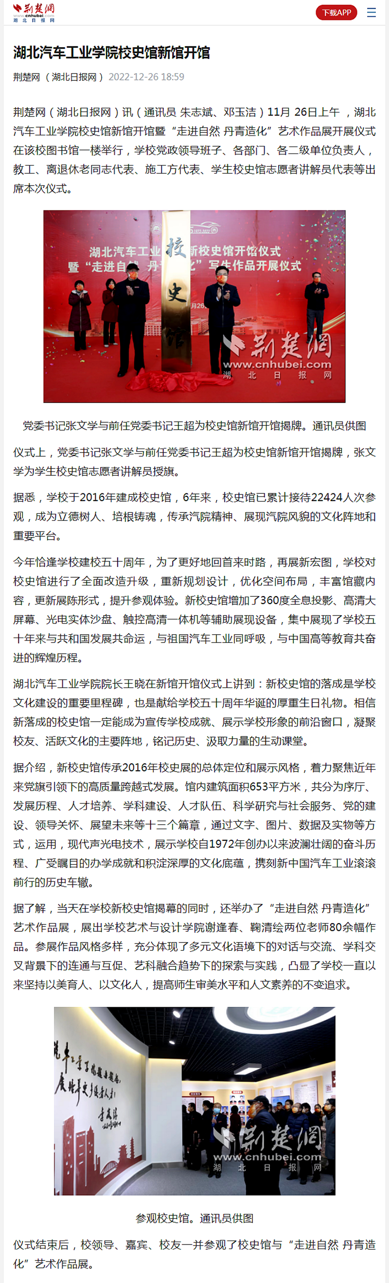 【荆楚网(湖北日报网)】湖北汽车工业学院校史馆新馆开馆