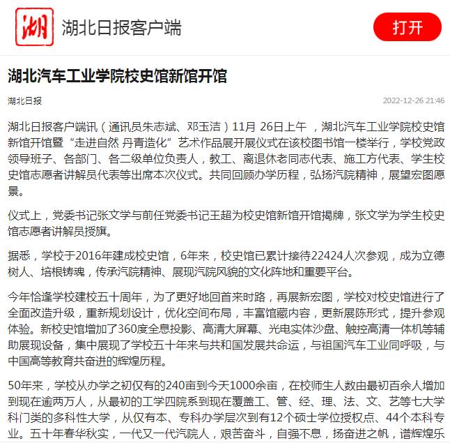 【湖北日报】湖北汽车工业学院校史馆新馆开馆
