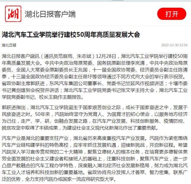 【湖北日报】湖北汽车工业学院举行建校50周年高质量发展大会