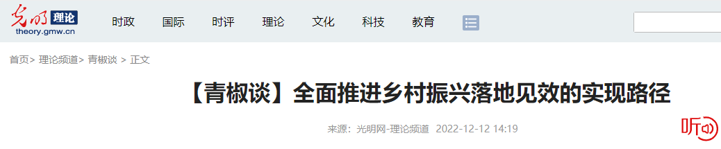 【光明网】【青椒谈】全面推进乡村振兴落地见效的实现路径