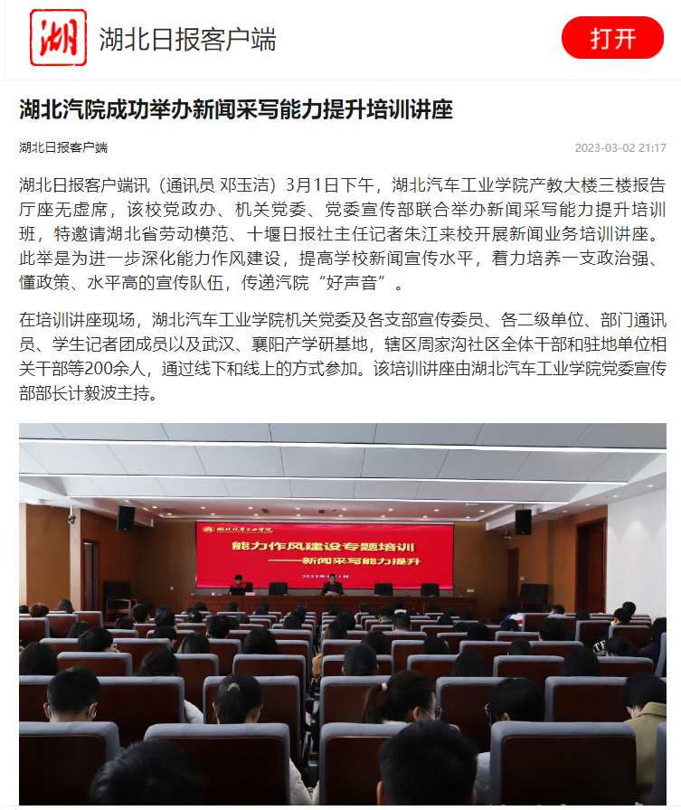 【湖北日报】湖北汽院成功举办新闻采写能力提升培训讲座
