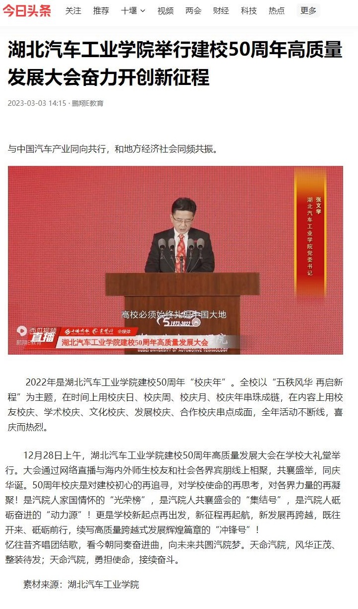 【今日头条】湖北汽车工业学院举行建校50周年高质量发展大会奋力开创新征程