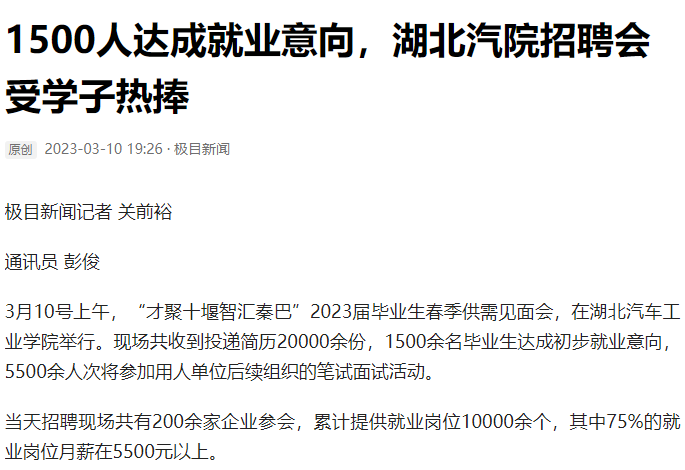 【极目新闻】1500人达成就业意向,湖北汽院招聘会受学子热捧