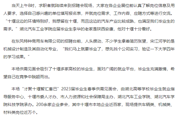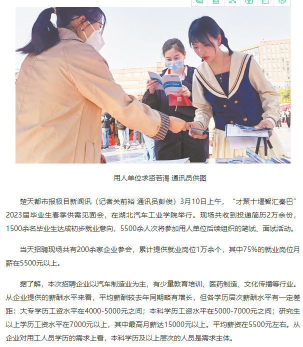 【楚天都市报】湖北汽院招聘会受高校学子热捧