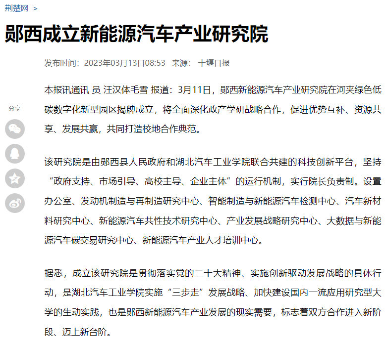 【荆楚网】郧西成立新能源汽车产业研究院