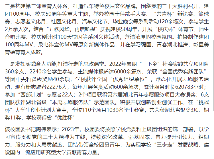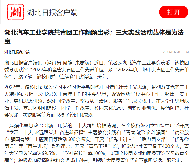 【湖北日报】湖北汽车工业学院共青团工作频频出彩,三大实践活动载体是为法宝