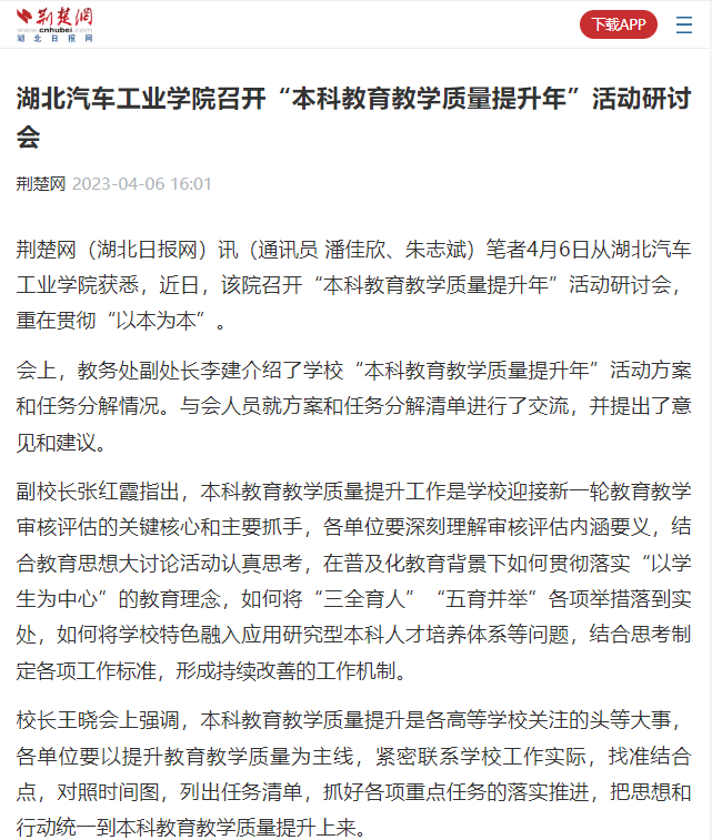 【荆楚网】湖北汽车工业学院召开“本科教育教学质量提升年”活动研讨会