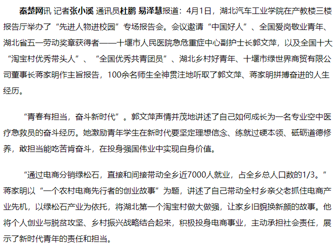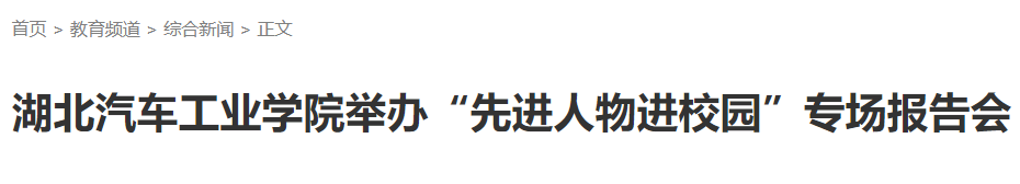 【秦楚网】湖北汽车工业学院举办“先进人物进校园”专场报告会