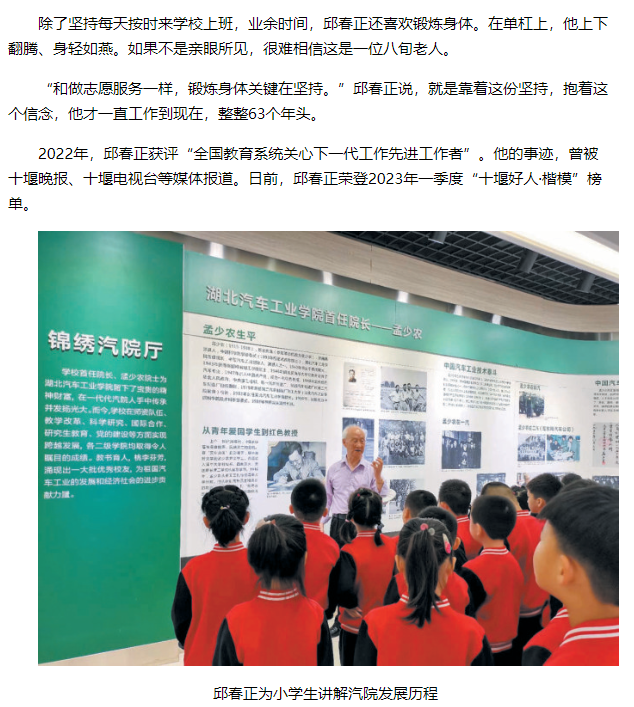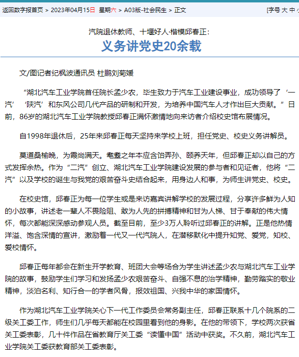 【十堰日报】汽院退休教师、十堰好人·楷模邱春正:义务讲党史20余载