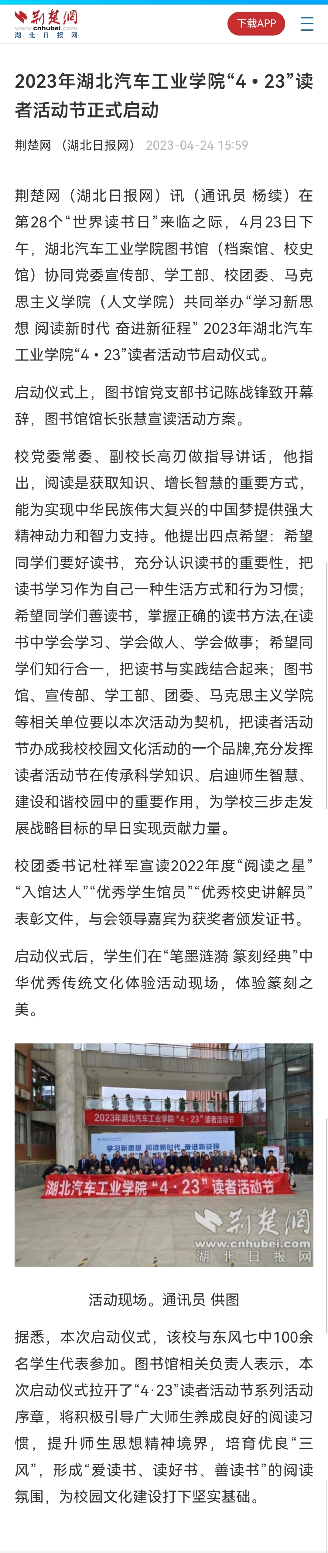 【荆楚网】2023年湖北汽车工业学院“4•23”读者活动节正式启动