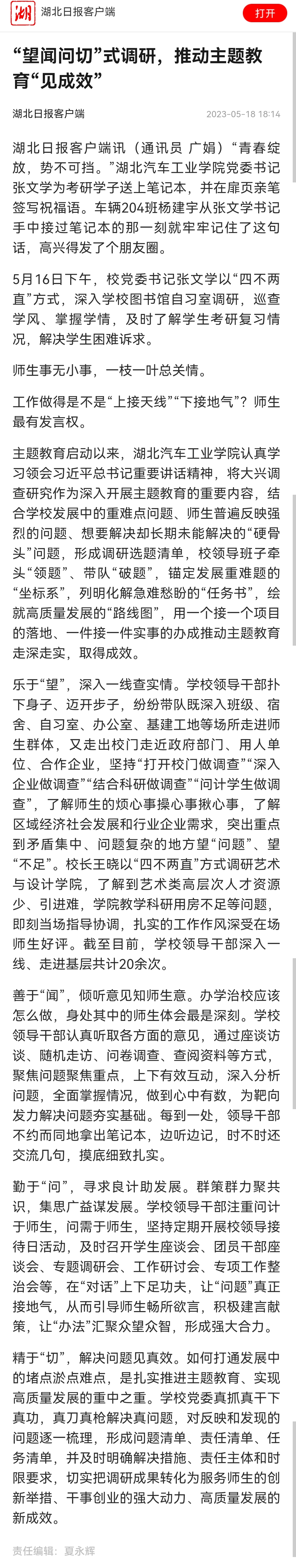 【湖北日报】“望闻问切”式调研,推动主题教育“见成效”