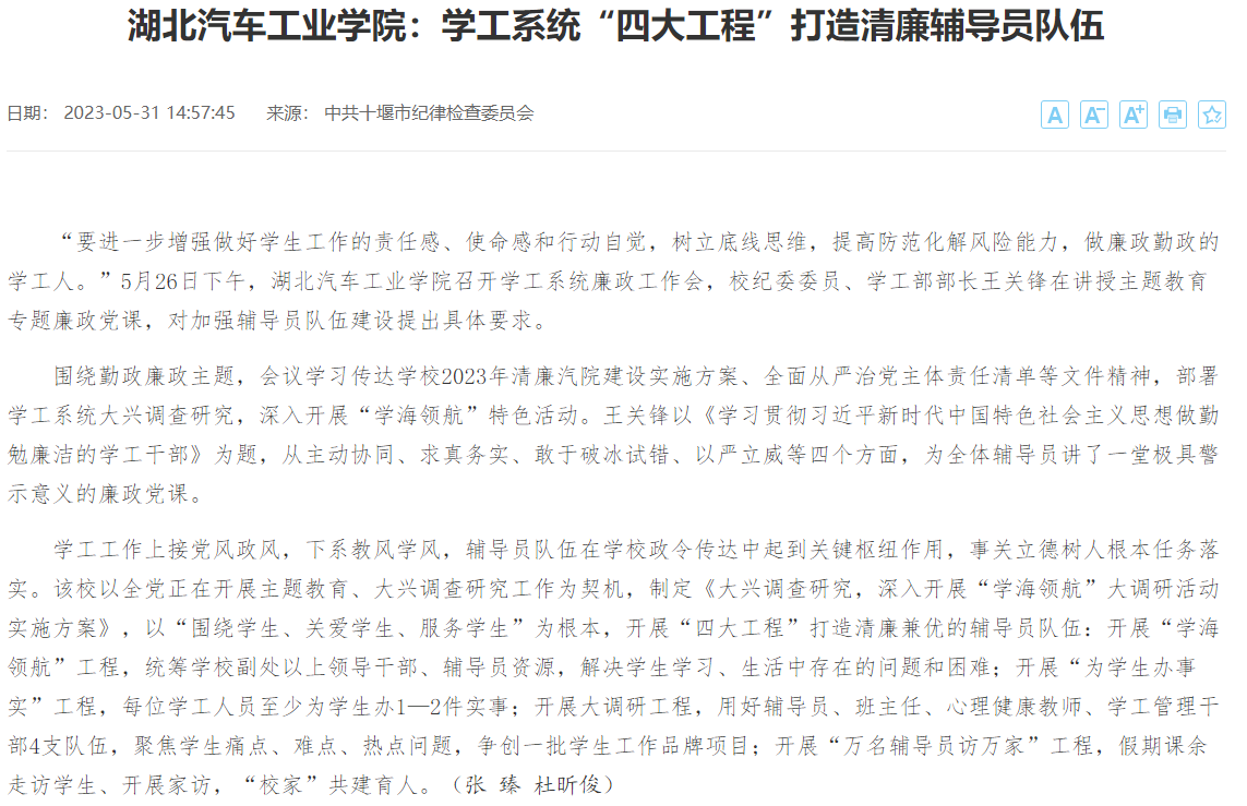 【中共十堰市纪委】湖北汽车工业学院:学工系统“四大工程”打造清廉辅导员队伍