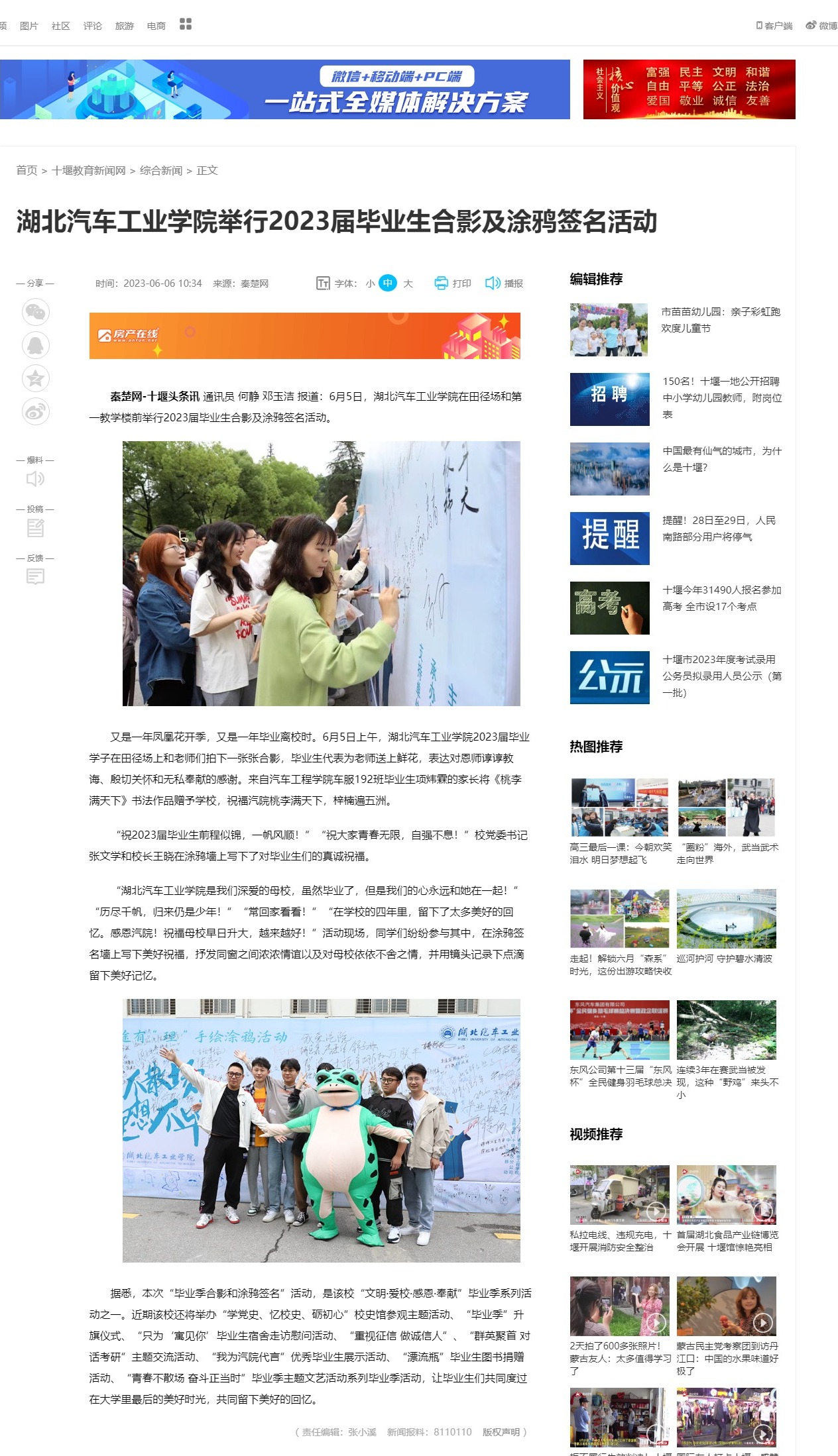 【秦楚网】湖北汽车工业学院举行2023届毕业生合影及涂鸦签名活动