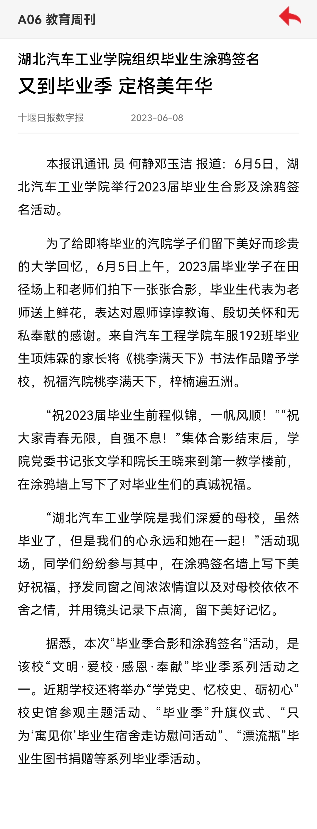 【十堰日报】湖北汽车工业学院组织毕业生涂鸦签名