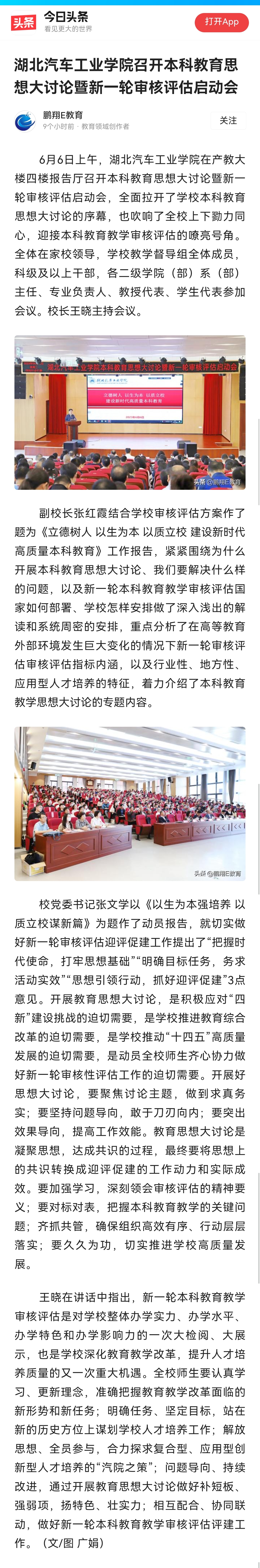 【今日头条】湖北汽车工业学院召开本科教育思想大讨论暨新一轮审核评估启动会