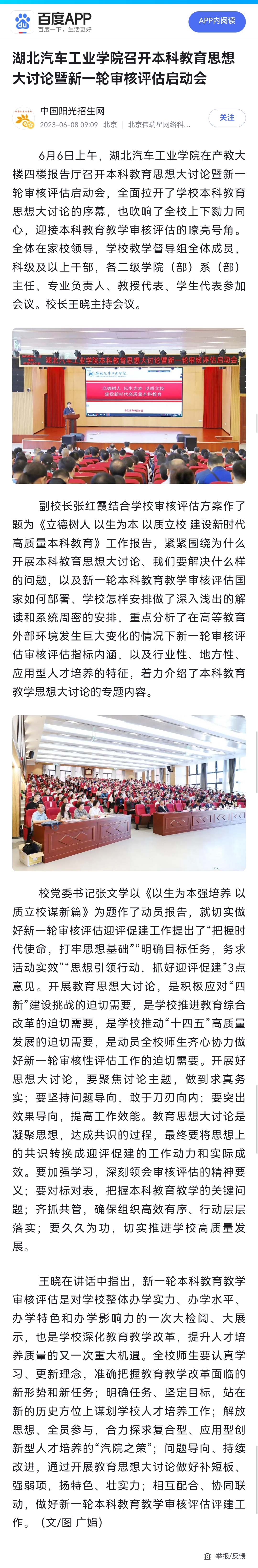 【百度】湖北汽车工业学院召开本科教育思想大讨论暨新一轮审核评估启动会