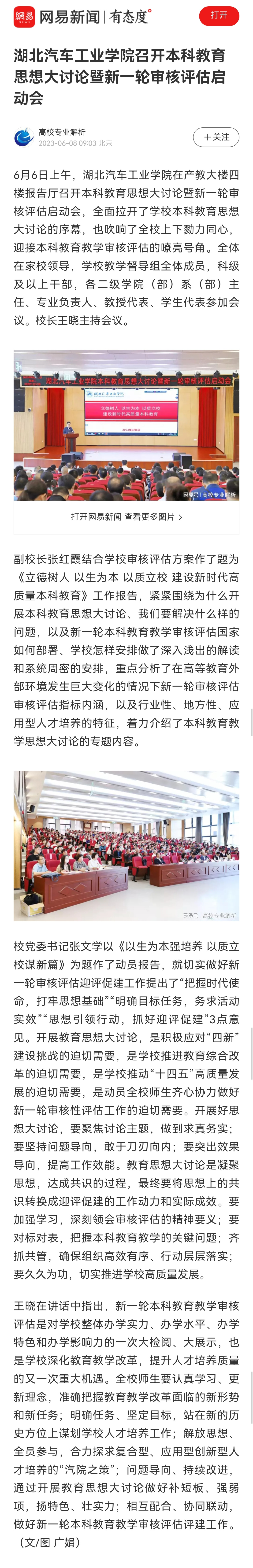 【网易】湖北汽车工业学院召开本科教育思想大讨论暨新一轮审核评估启动会