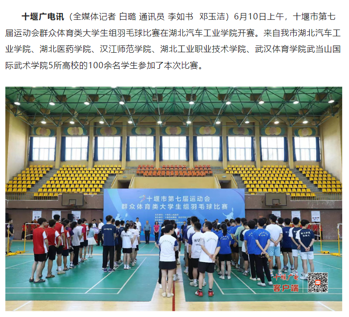 【十堰广电】市七运会大学生组羽毛球比赛在湖北汽车工业学院开幕