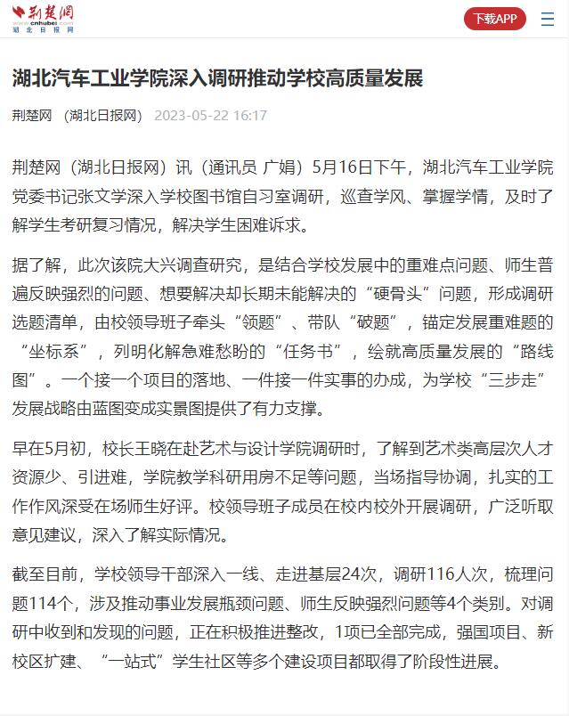 【荆楚网】湖北汽车工业学院深入调研推进学校高质量发展