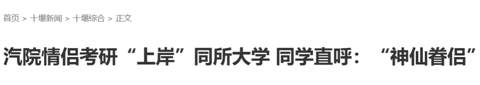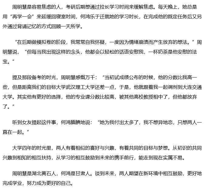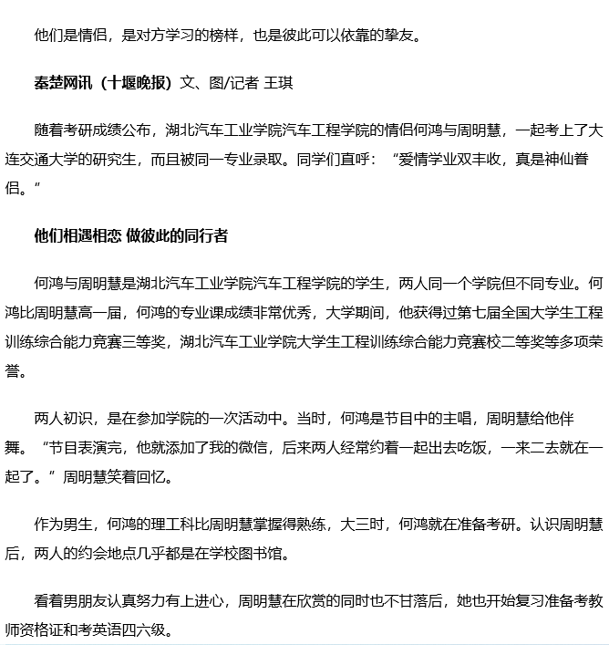 【秦楚网】汽院情侣考研“上岸”同所大学 同学直呼:“神仙眷侣”