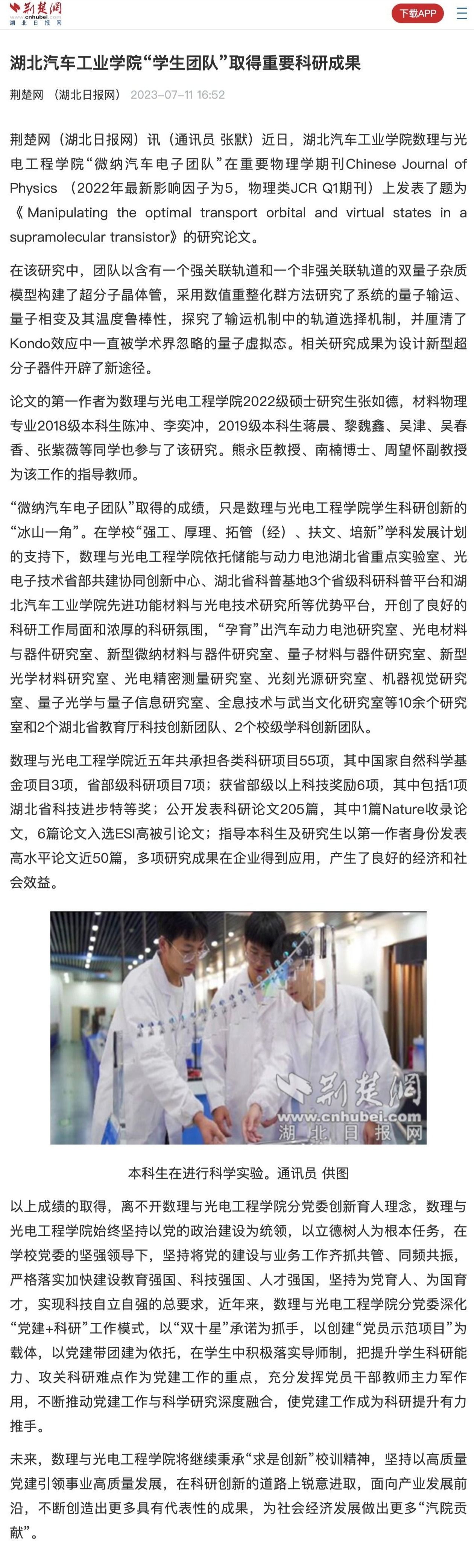 【荆楚网】湖北汽车工业学院“学生团队”取得重要科研成果