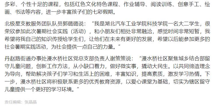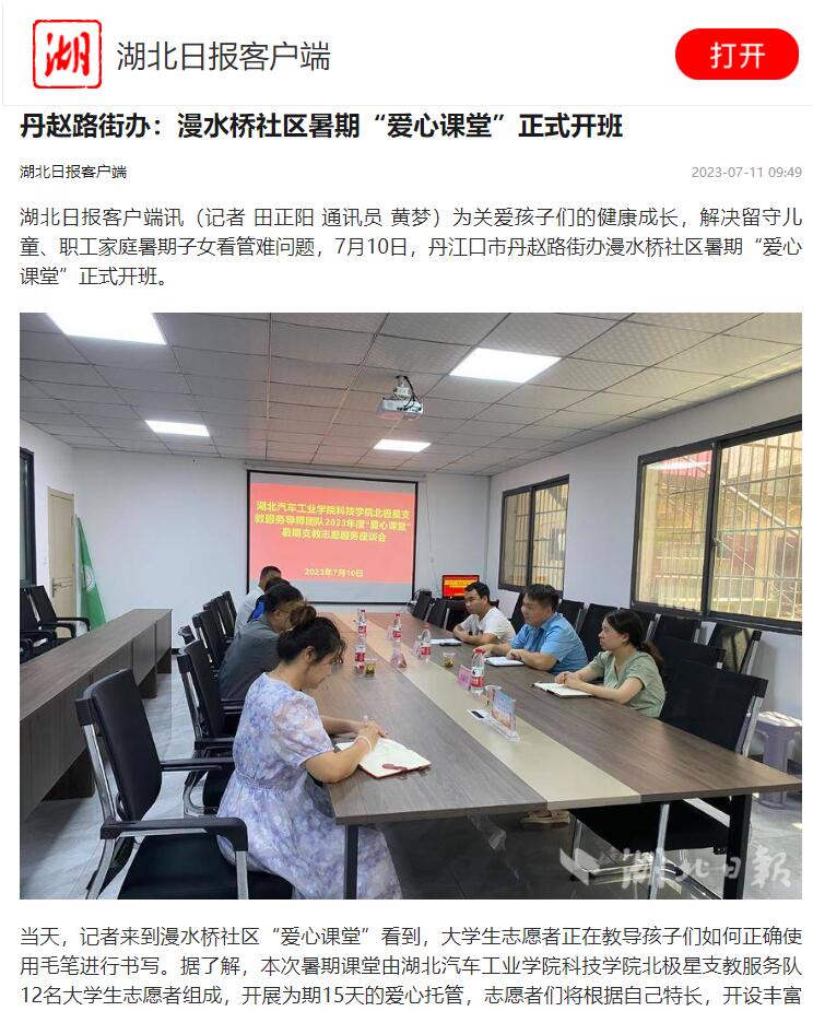 【湖北日报】丹赵路街办:漫水桥社区暑期“爱心课堂”正式开班