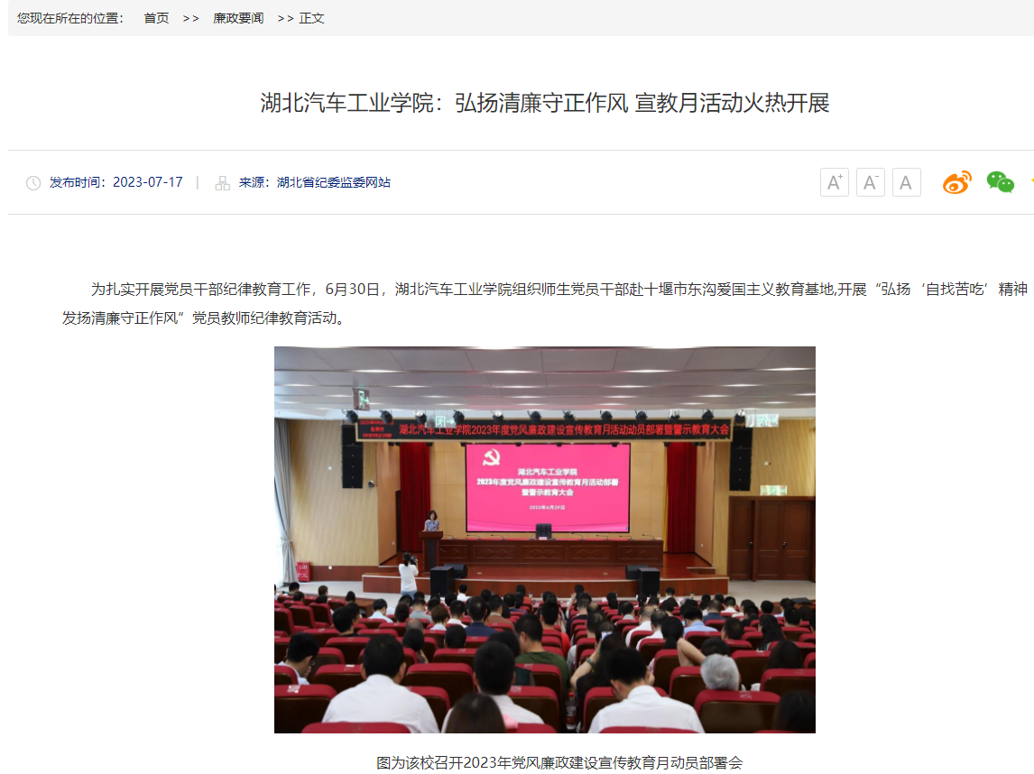 【湖北省纪委监委】湖北汽车工业学院:弘扬清廉守正作风 宣教月活动火热开展
