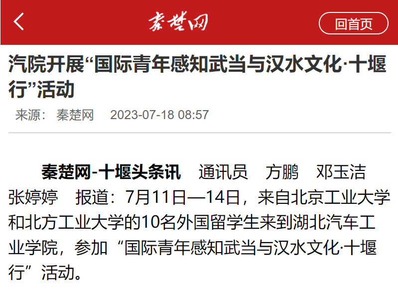 【秦楚网】汽院开展“国际青年感知武当与汉水文化·十堰行”活动