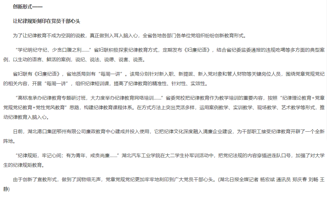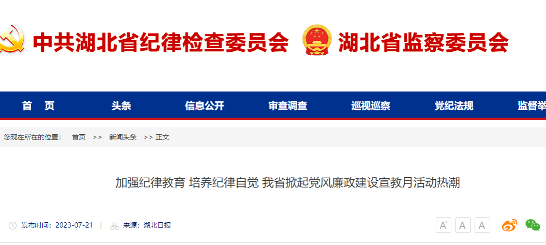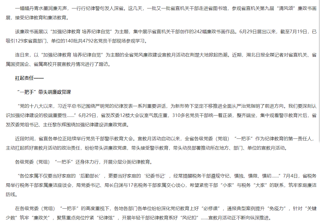 【湖北省纪委监委】加强纪律教育 培养纪律自觉 我省掀起党风廉政建设宣教月活动热潮