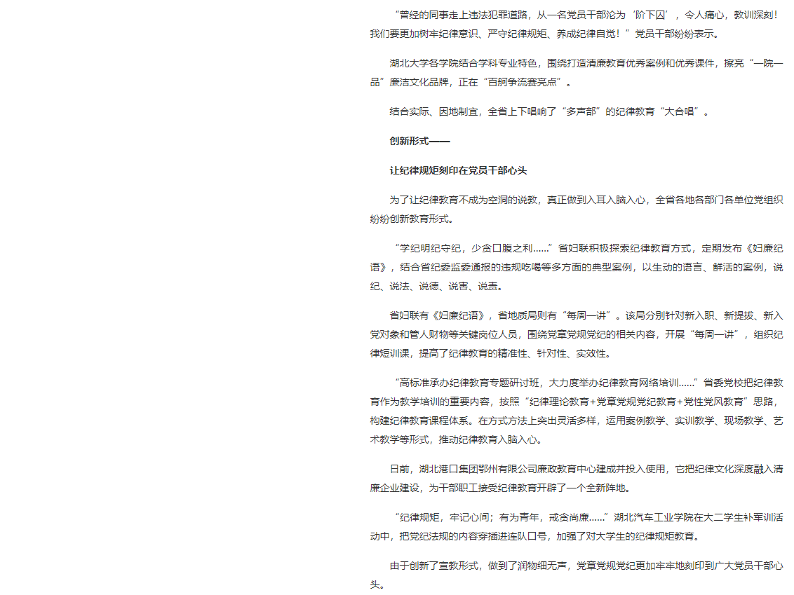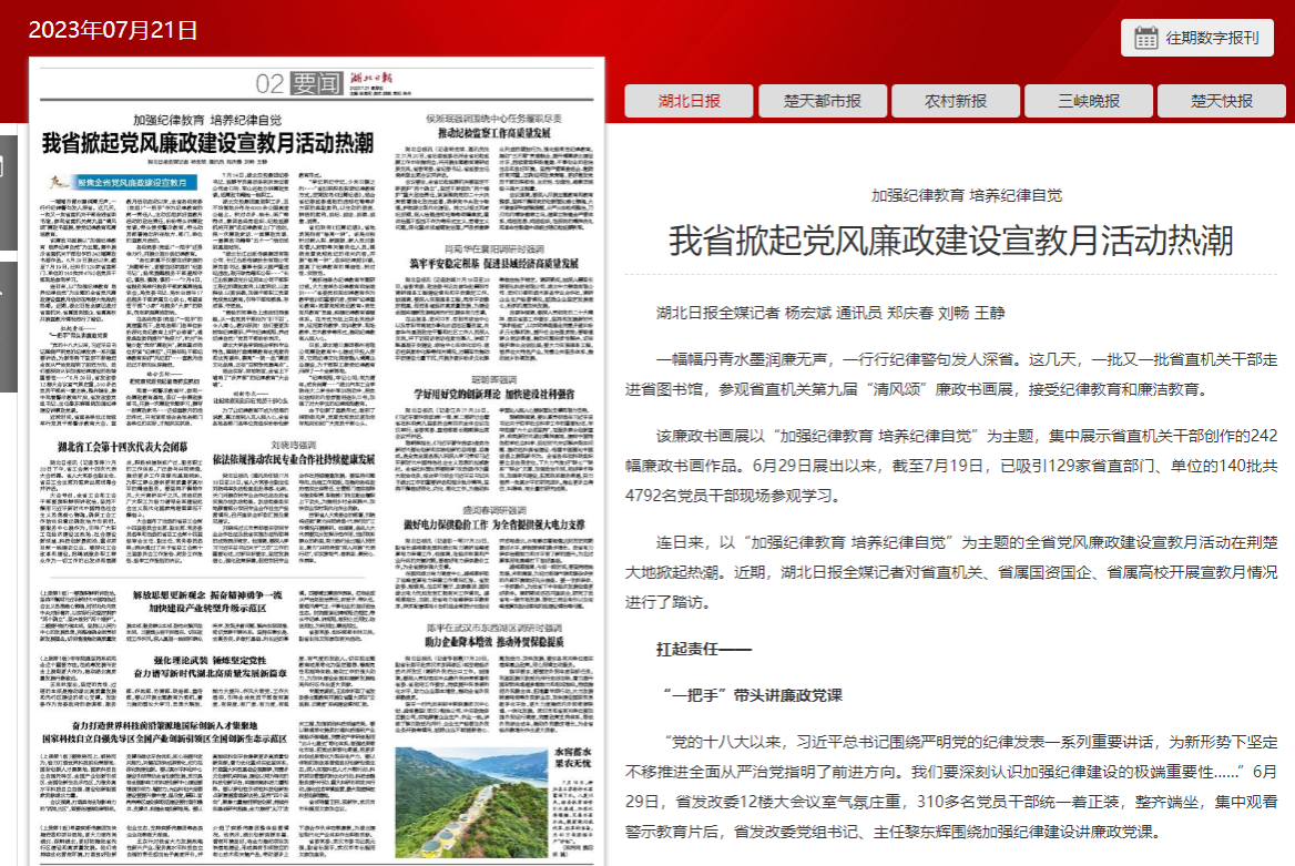 【湖北日报】加强纪律教育 培养纪律自觉 我省掀起党风廉政建设宣教月活动热潮