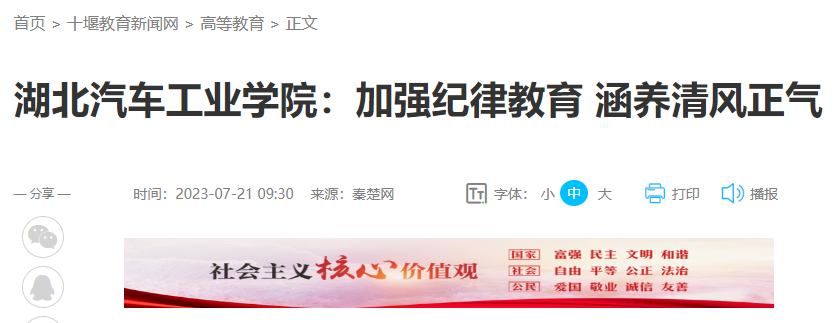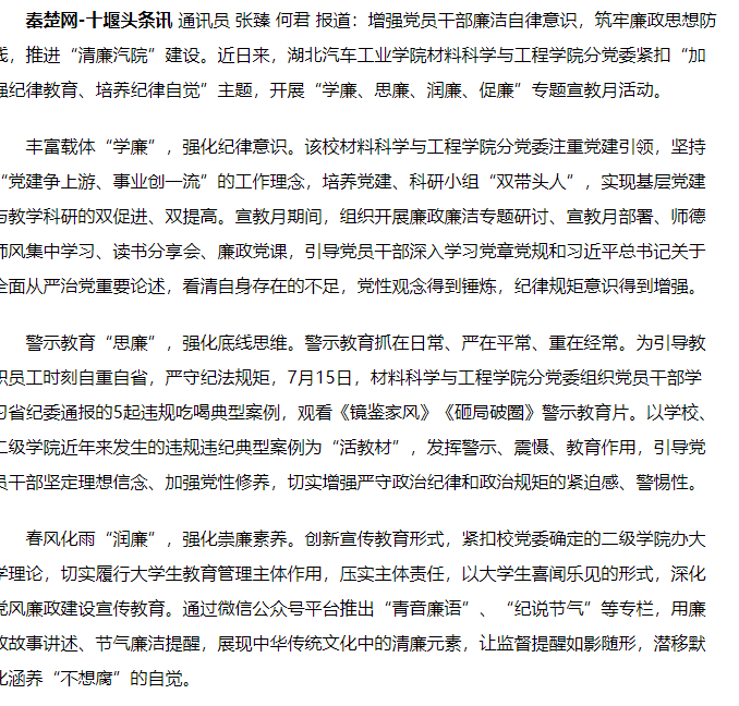 【秦楚网】湖北汽车工业学院:加强纪律教育 涵养清风正气