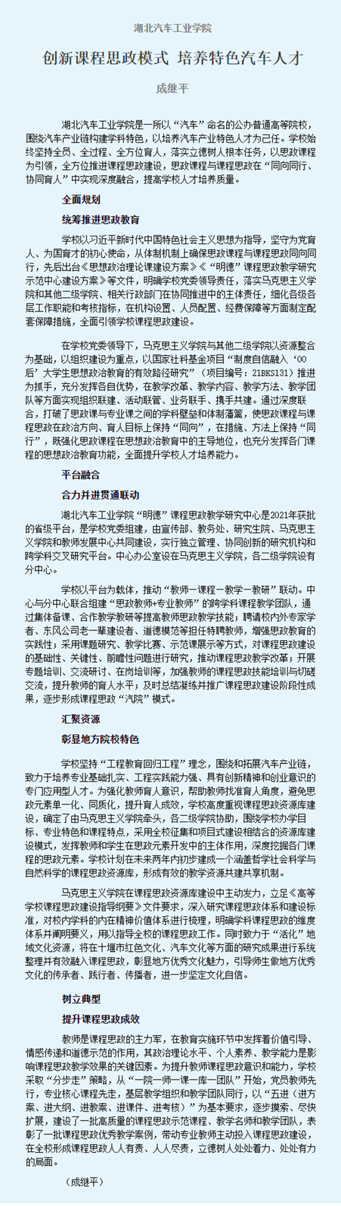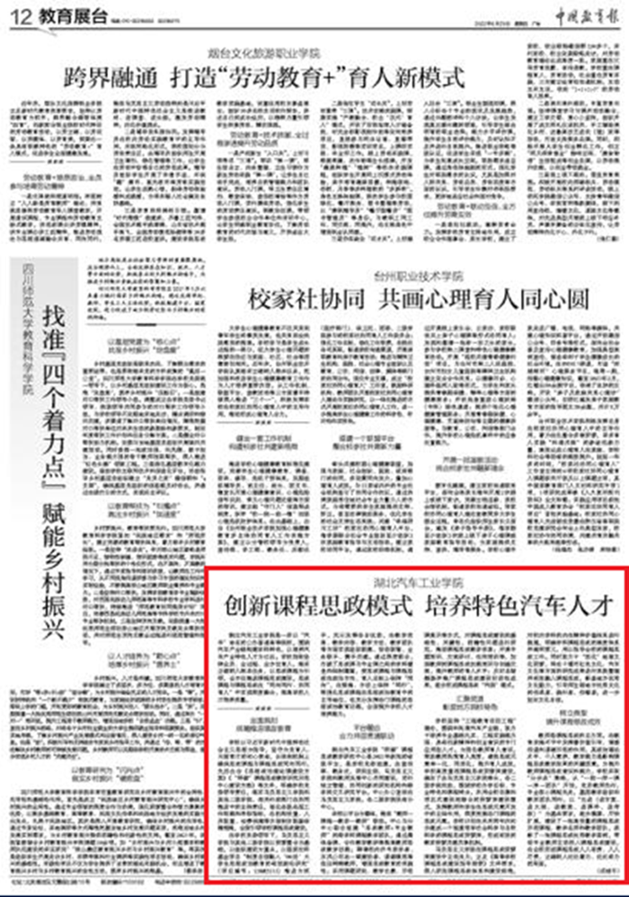 【中国教育报】湖北汽车工业学院创新课程思政模式,培养特色汽车人才