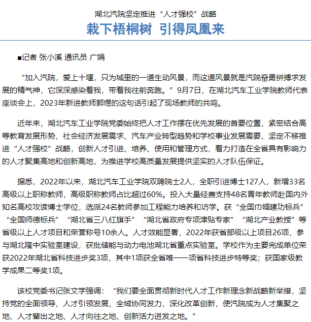 【十堰晚报】湖北汽院坚定推进“人才强校”战略 栽下梧桐树 引得凤凰来