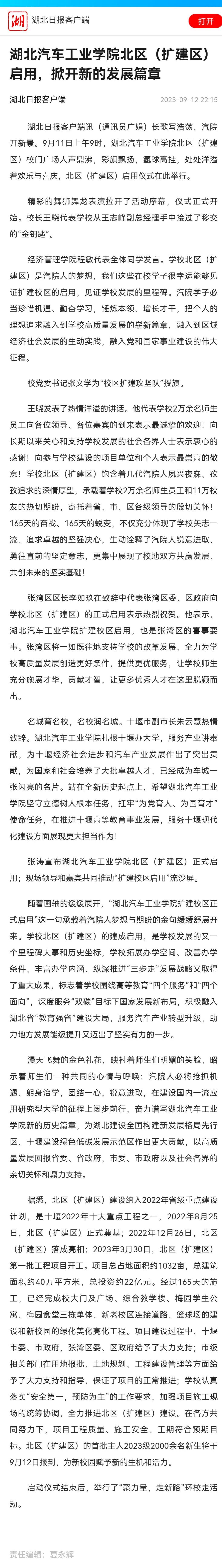 【湖北日报】湖北汽车工业学院北区(扩建区)启用,掀开新的发展篇章