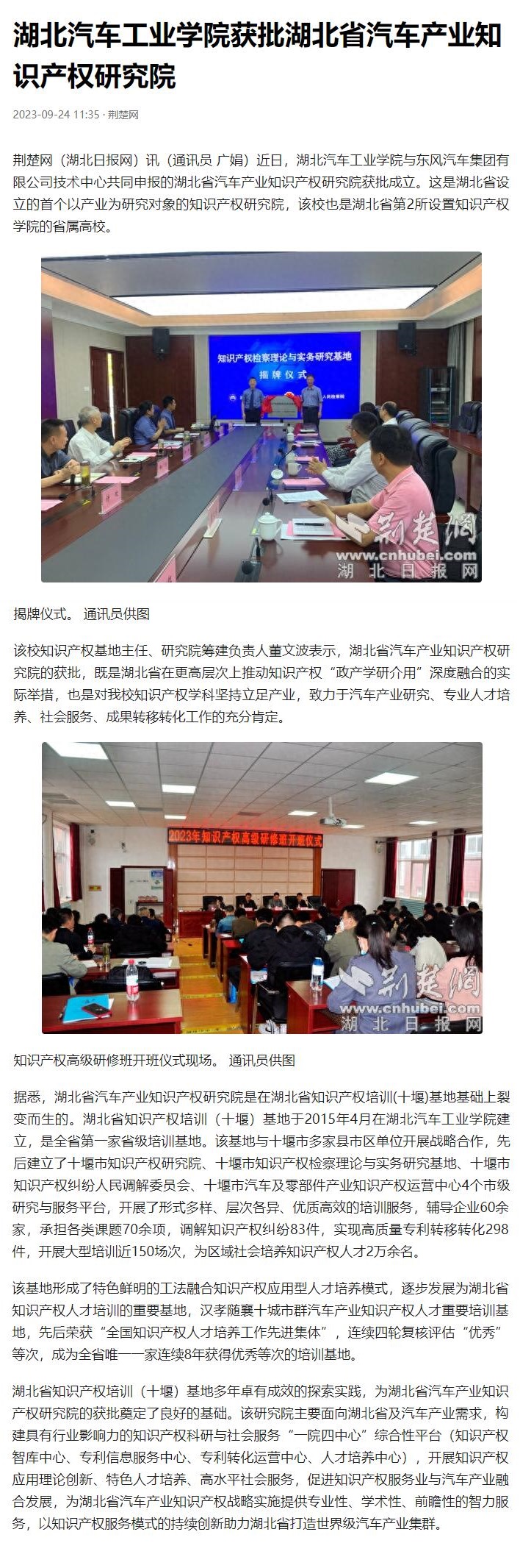 【荆楚网】湖北汽车工业学院获批湖北省汽车产业知识产权研究院
