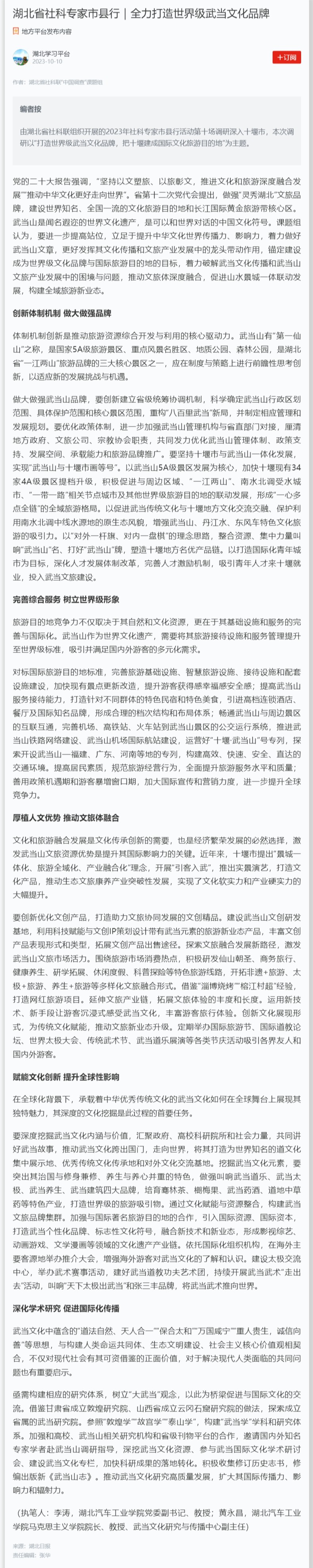 【学习强国】湖北省社科专家市县行|全力打造世界级武当文化品牌