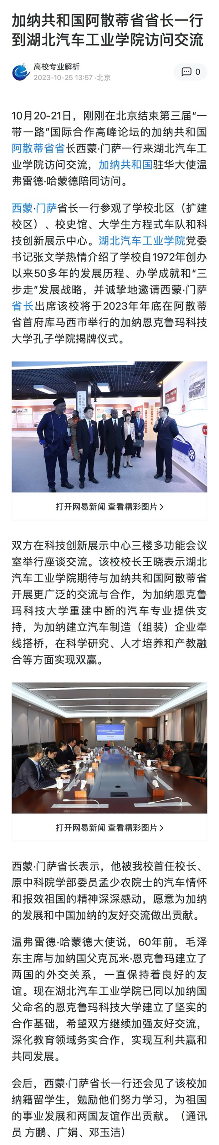 【网易】加纳共和国阿散蒂省省长一行到湖北汽车工业学院访问交流