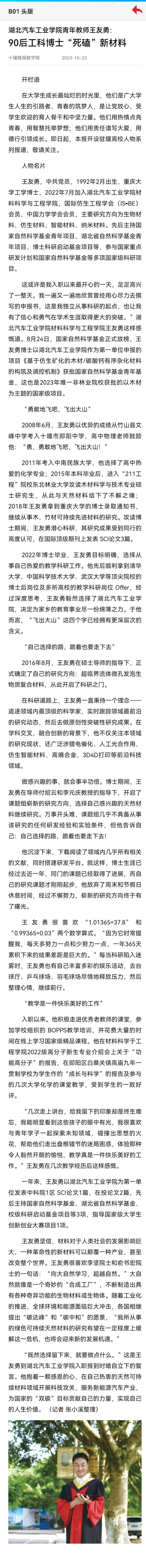 【十堰晚报】湖北汽车工业学院青年教师王友勇:90后工科博士“死磕”新材料