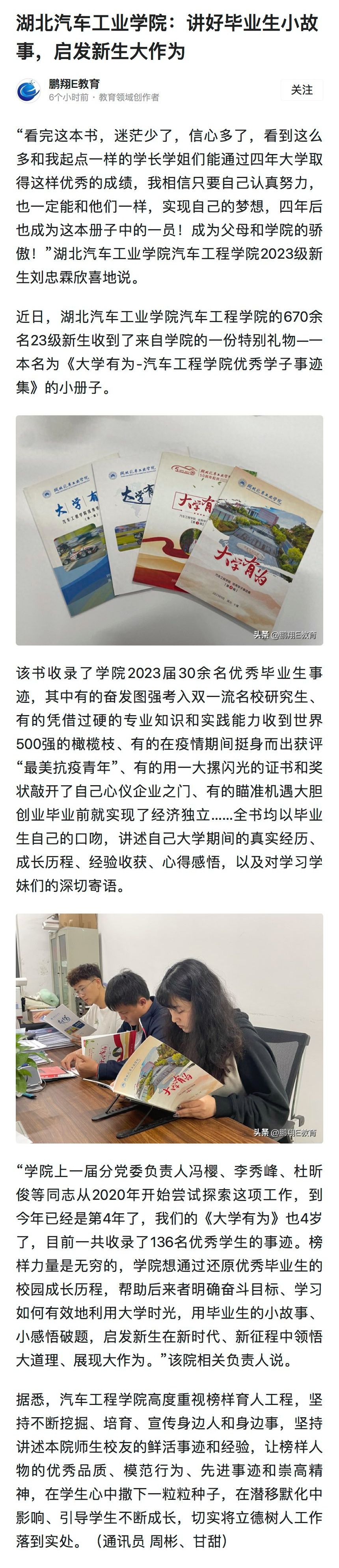 【今日头条】湖北汽车工业学院:讲好毕业生小故事,启发新生大作为