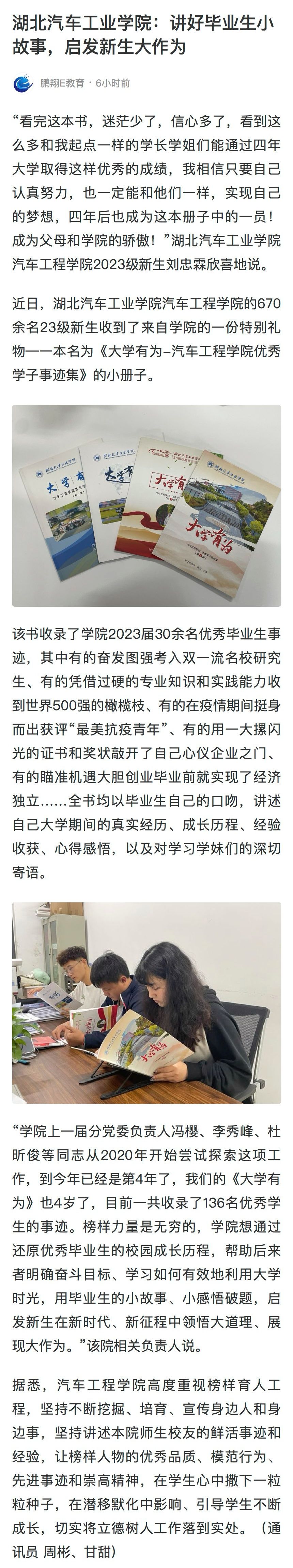 【一点资讯】湖北汽车工业学院:讲好毕业生小故事,启发新生大作为