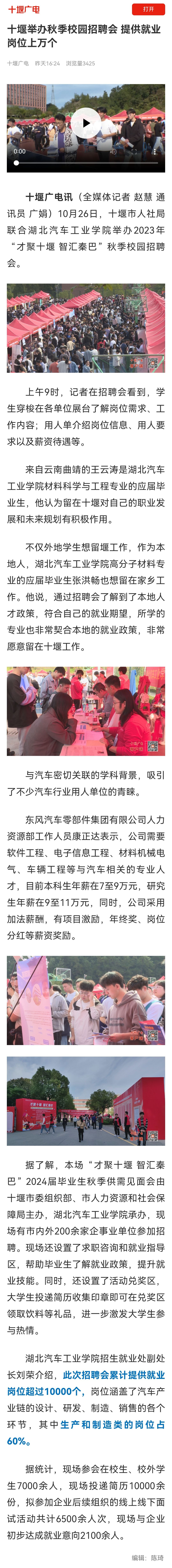 【十堰广电】十堰举办秋季校园招聘会 提供就业岗位上万个