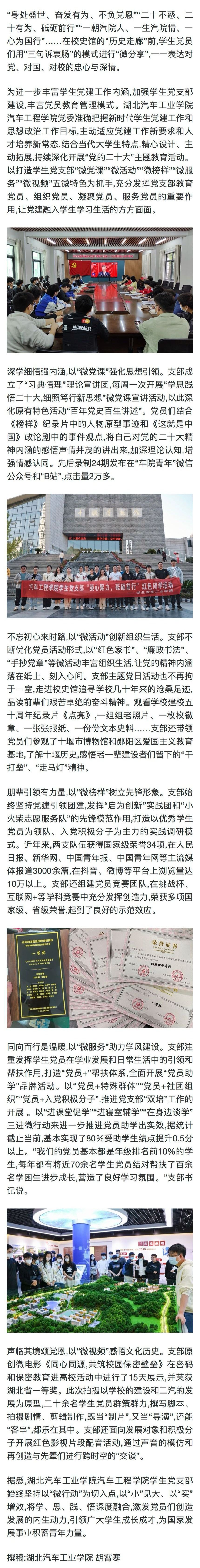 【人民日报】湖北汽车工业学院:在学思践悟中打造“五微特色”引领学生党员成长成才